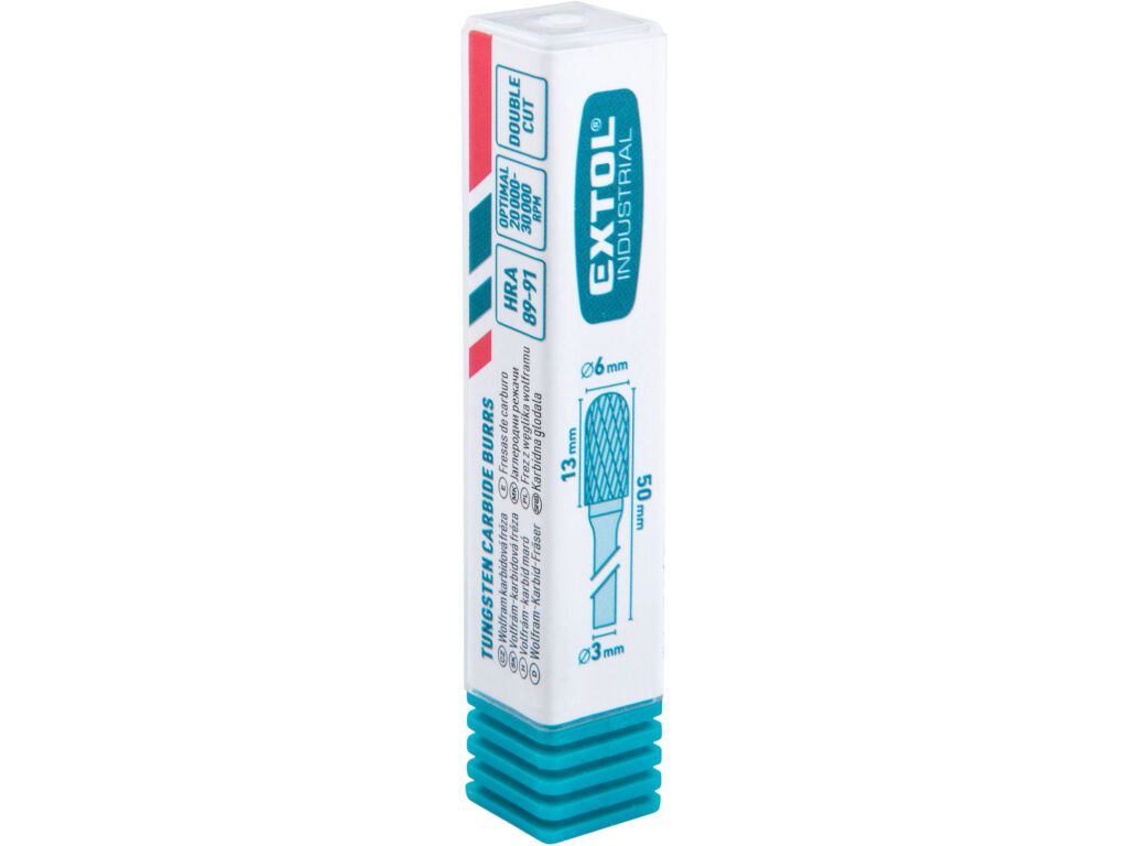 EXTOL INDUSTRIAL fréza karbidová, konická-jehlan, ?6x13mm, ?stopky 3mm, sek...