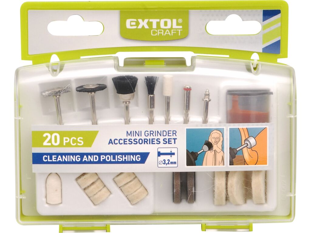 EXTOL nástavce čistící a leštící na přímou brusku, sada 20ks, průměr dříku 3,2mm, EXTOL CRAFT (73417)