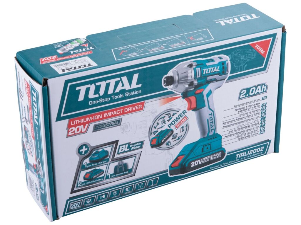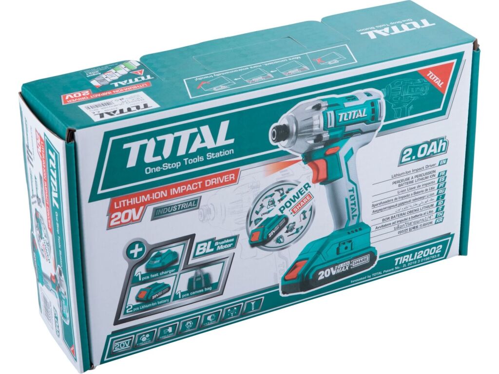 TOTAL utahovák rázový AKU 1/4", brushless, 20V Li-ion (2x), 2000mAh, industrial (TIRLI2002)
