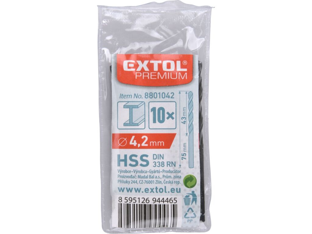 EXTOL vrták do kovu HSS, bal 10ks, O 4,2 L=75 L1=43, HSS, EXTOL PREMIUM (8801042)