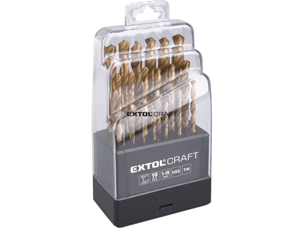 EXTOL vrtáky do kovu, sada 19ks, 1-10mm, po 0,5mm, leštěné, HSS TITAN, EXTOL CRAFT (1119A)